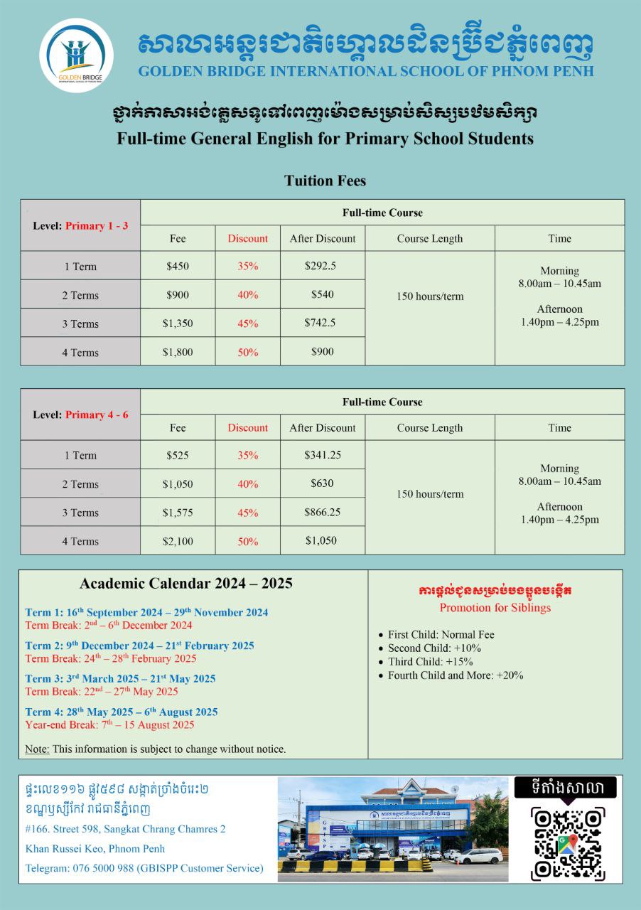 ថ្នាក់ភាសាអង់គ្លេសទូទៅ ពេញម៉ោង